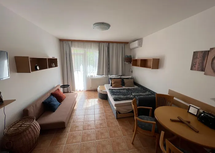 Los huéspedes pueden explorar la Playa Napfény a unos 700 metros de este apartamento, mientras que el Gombkilato está a aproximadamente 10 minutos en coche. El centro de la ciudad se sitúa a 1 km y el Aeropuerto Hévíz-Balaton está a 55 km.